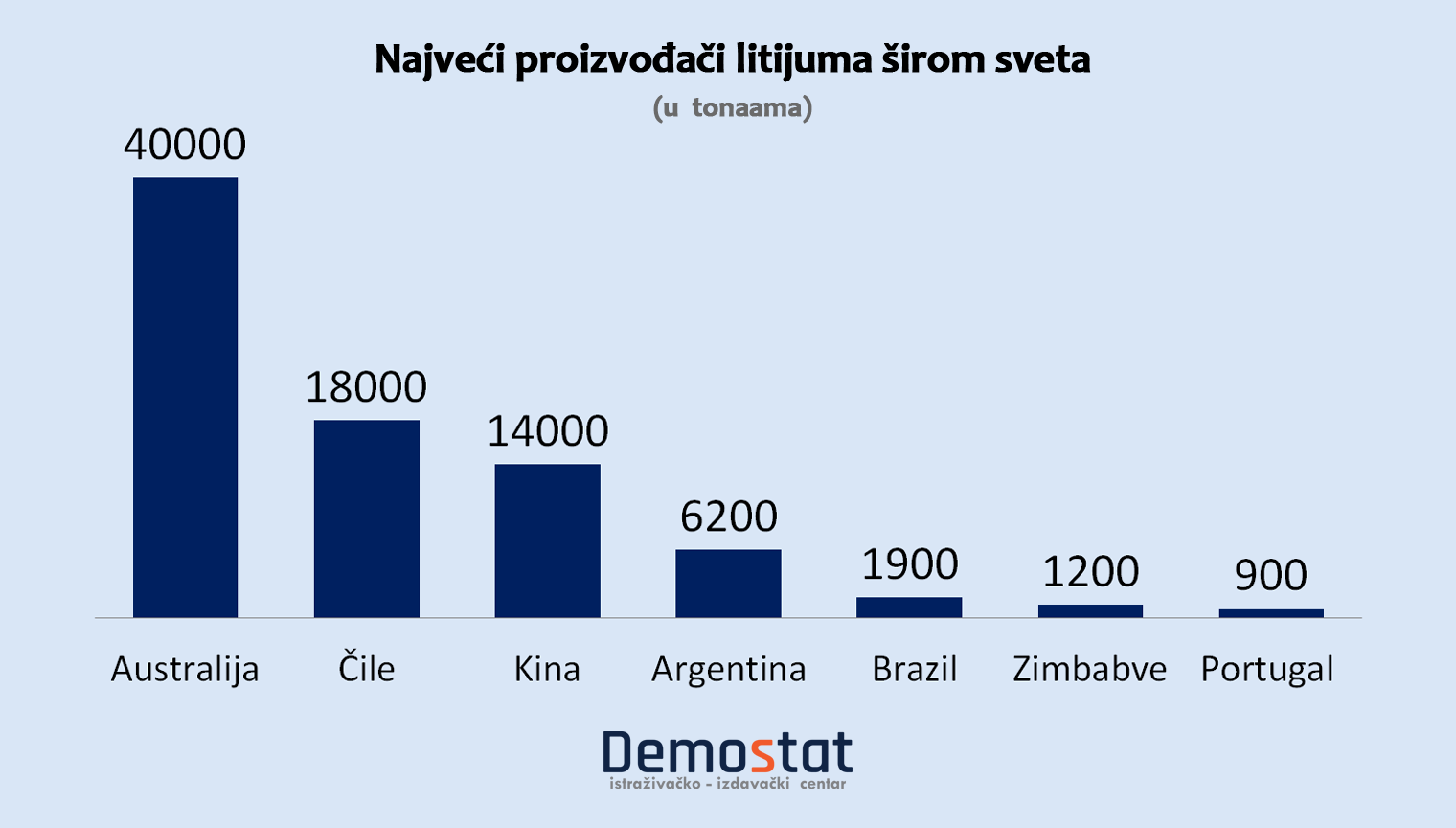 Na sledećem grafikonu prikazani su najveći proizvođači litijuma širom sveta.