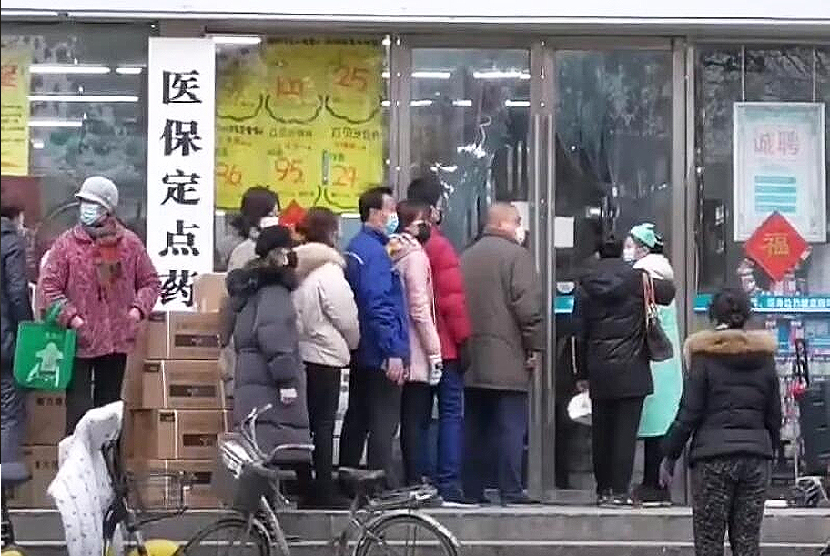 Građani Vuhana ispred apoteke (Foto: Screenshot Youtube)