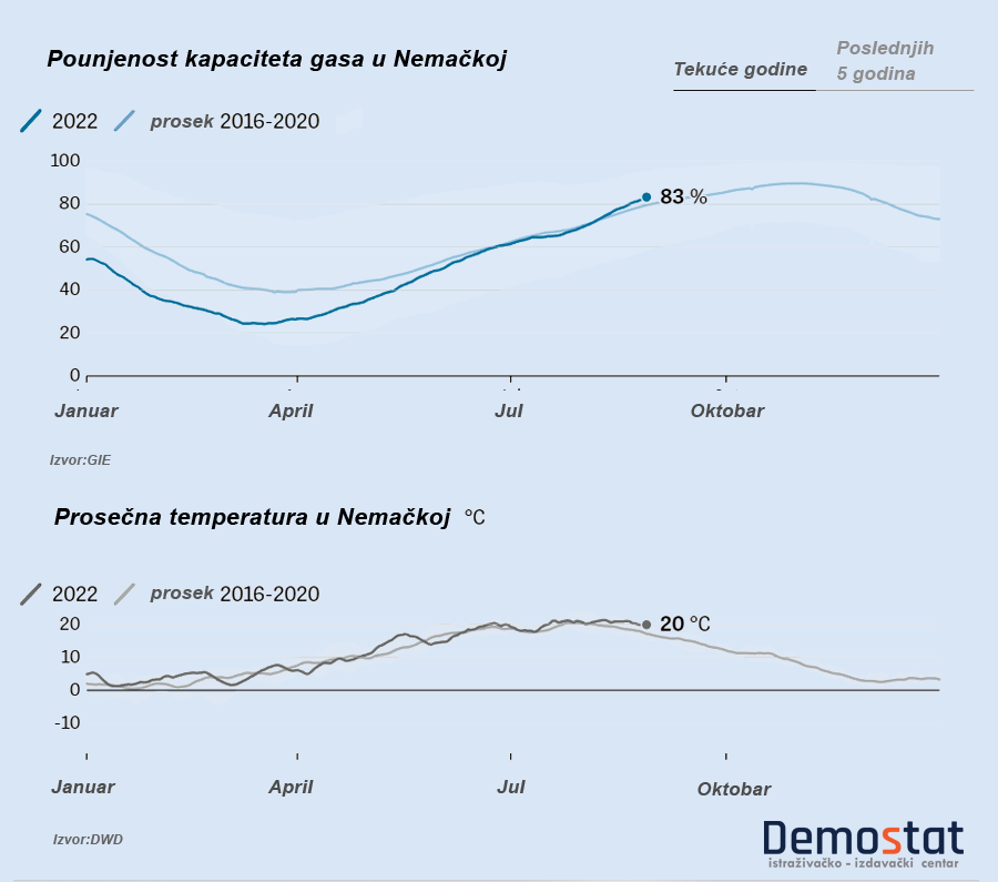 Skladišta gasa služe kao važne rezerve za zimu, ali i kao privremeno skladište za velike isporuke tečnog prirodnog gasa. Kada bi sva nemačka skladišta bila popunjena do vrha, njihova zapremina gasa od oko 24 milijarde kubnih metara ne bi pokrila ni jednu trećinu nemačke godišnje potražnje, koja je u 2020. godini iznosila 86 milijardi kubnih metara. Da bi prebrodila zimu neoštećena, Nemačkoj je potrebno ne samo da njeni skladišni kapaciteti budu što puniji, već i kontinuirano snabdevanje iz cevovoda ili terminala tečnog prirodnog gasa.
