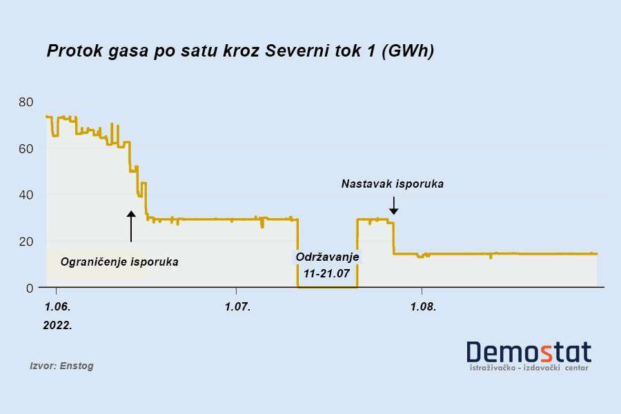 Rusija, Norveška i Alžir se prvenstveno oslanjaju na gasovode za transport svog prirodnog gasa u Evropsku uniju, Ujedinjeno Kraljevstvo i Švajcarsku. Već nedeljama fokus je bio na gasovodu Severni tok 1, koji ide od Rusije preko Baltičkog mora do Lubmina u Nemačkoj, u blizini grada Grajfsvalda. Rusija je ograničila isporuke gasa u junu pre nego što ih je u potpunosti prekinula 11. jula kako bi omogućila rutinsko godišnje održavanje. Uprkos zabrinutosti da to možda neće učiniti, Rusija je prošle nedelje nastavila isporuke gasa kroz gasovod Baltičko more. Ali na koju količinu gasa Nemačka može da računa da će teći kroz gasovod sada kada su popravke završene?