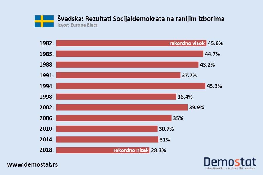 Socijaldemokrate su i ovde, kao i na drugim mestima u Evropskoj uniji, u povlačenju. Švedska Socijaldemokratska partija došla je na čelo sa 28 odsto osvojenih glasova, ali sa najgorim rezultatom u poslednjih sto godina.