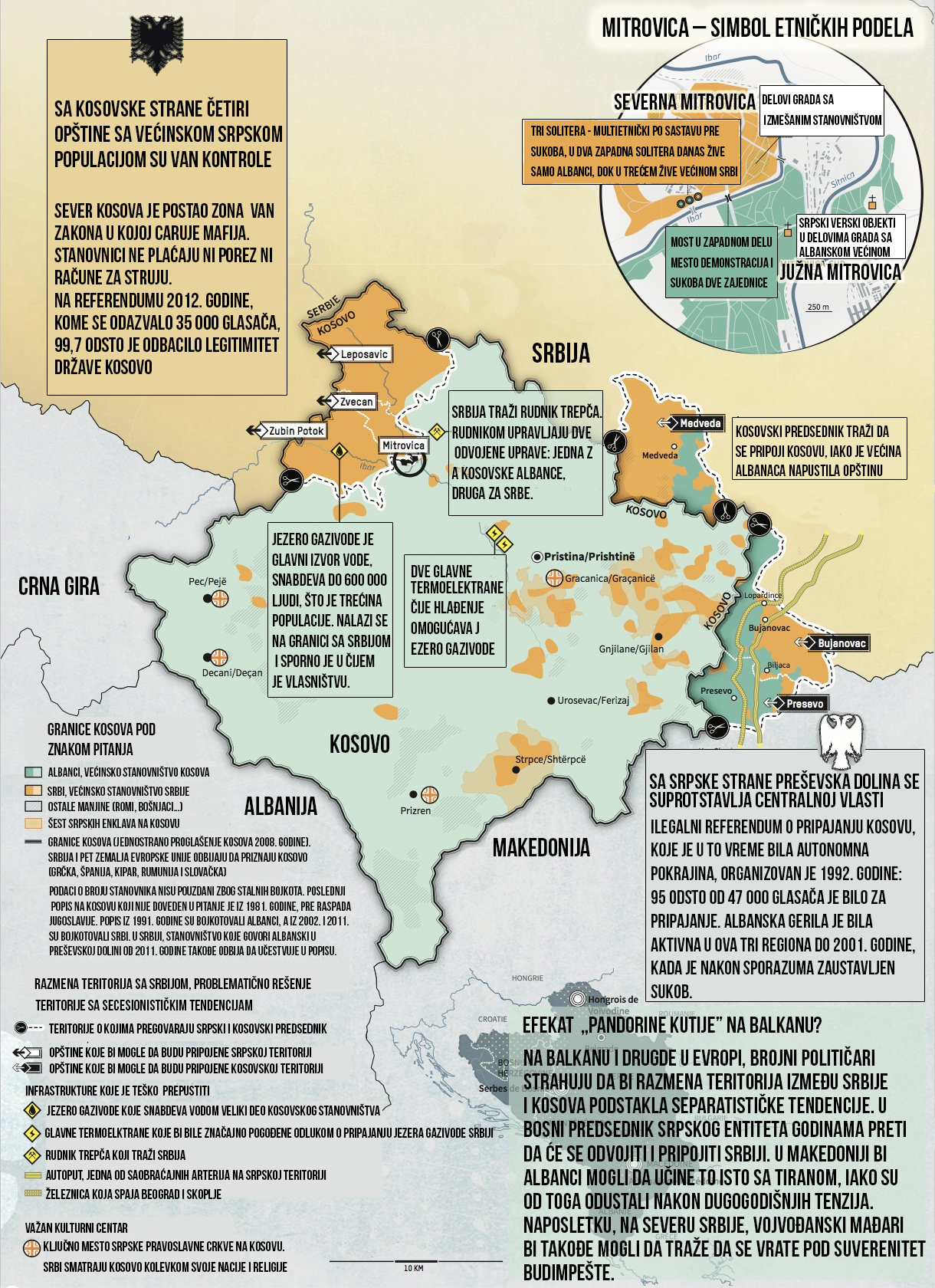 Ako se to desi, svi ćemo otići odavde”. Južno od Ibra Srbi ponavljaju da je Kosovo deo Srbije. O ideji podele teritorije govore pognute glave, kao o nekoj pošasti koju iščekuju sa fatalizmom. Ponavljaju i da ništa ne zavisi od njih, da o njihovoj sudbini odlučuju velike sile. „Nije Kosovo ni srpsko ni albansko, ono je američko”, kaže sedamdesetogodišnja baka iz Gotovuše.