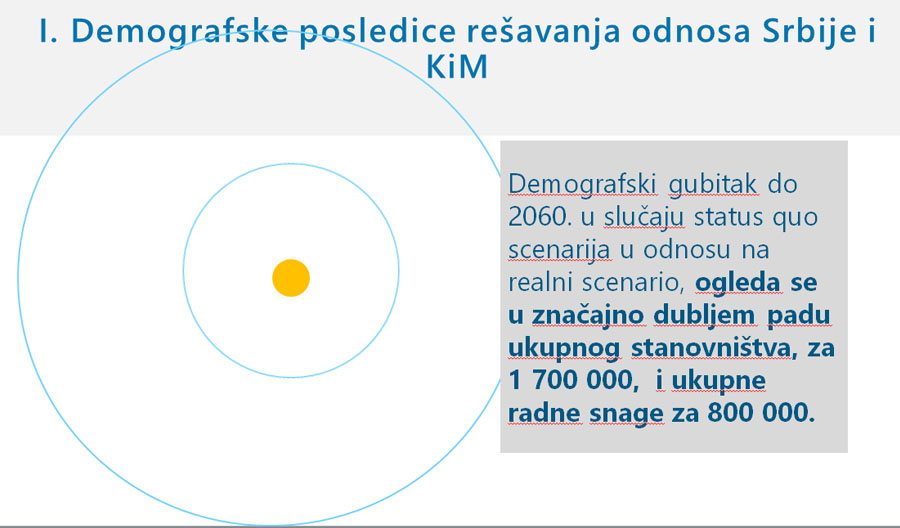 Kovačević kaže da je oprezno ušao u analizu projekcija polazeći od dva scenarija. “Nisam bio siguran šta mogu da uradim, duboko sam verovao da gazim veoma osetljivom linijom, i za stručnu i za naučnu i za političku javnost, spoljnu i unutrašnju”, objasnio je dileme koje je imao.