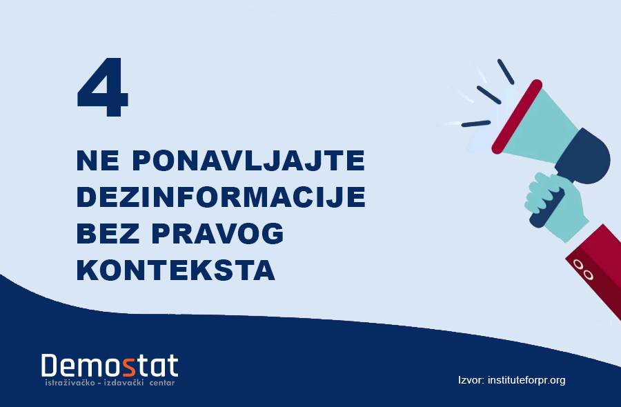 ČETIRI – Ne ponavljajte pominjanje dezinformacije bez odgovarajućeg konteksta