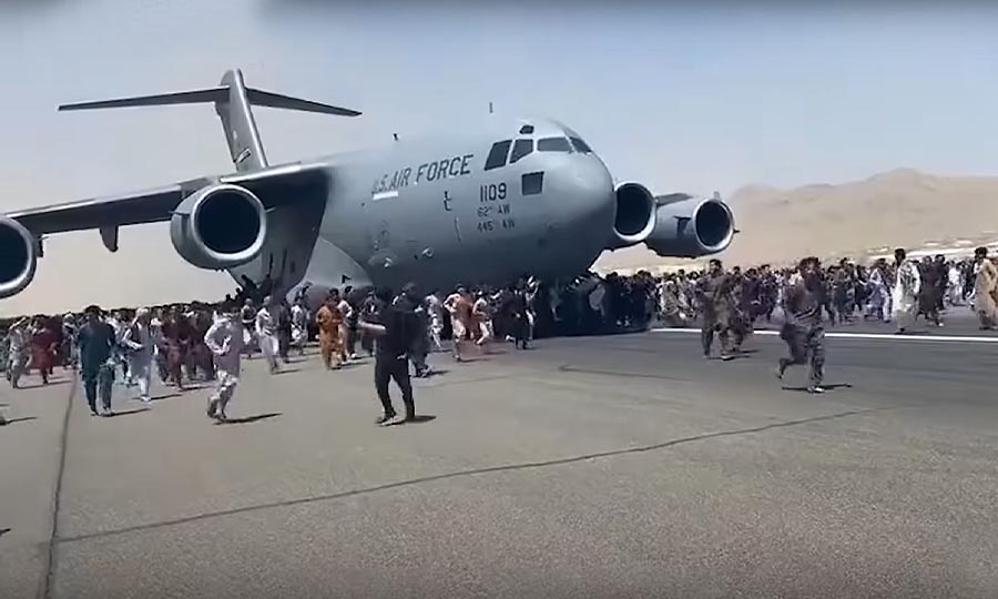 Snimak aviona američkog vazduhoplovstva koji je obišao svet i postao simbol evakuacije građana iz Avganistana po dolasku talibana na vlast bio je takođe predmet rata dezinformacijama. Naime, na društvenim mrežama su se raširile objave da je snimak aviona koji poleće, sa Avganistancima koji trče sa strane, montiran. Što je laž – snimak je autentičan.