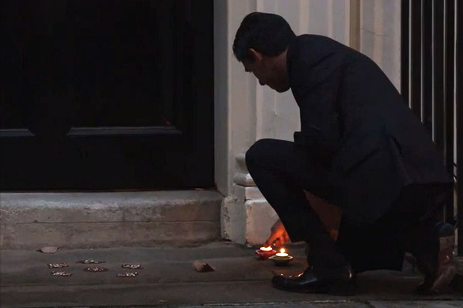 Drugi snimak koji je postao viralan jeste onaj na kojem se vidi kako Riši Sunak, inače prvi premijer Velike Britanije azijskog porekla, pali svećice ispred vrata u Dauning stritu.
