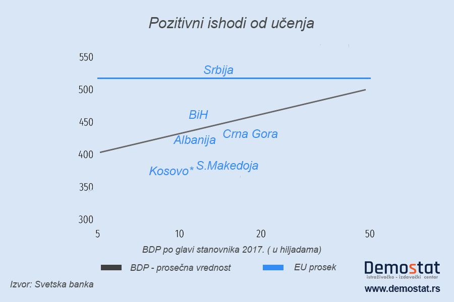 Upis u predškolske ustanove na Zapadnom Balkanu je daleko ispod proseka u zemljama EU. Ulaganje u mlađu decu, posebno onu u nepovoljnijem položaju, od suštinskog je značaja za obezbeđivanje pravilnog razvoja mozga i postavljanja čvrstih osnova za učenje. U Bosni i Hercegovini, na Kosovu i Severnoj Makedoniji, upis u predškolske ustanove je daleko ispod proseka za zemlje sa sličnim prihodima; i u svim zemljama sem Albanije, predškolsko obrazovanje je daleko ispod proseka za zemlje članice EU. Ne zna se dovoljno o kvalitetu ranog školovanja dece iako je to ključno kako bi se ostvario profit od celokupnog obrazovanja. Jedino po čemu Srbija prednjači u ovoj grupi zemalja su pozitivni ishodi od učenja (na nivoima od osnovnog ka višim stepenima obrazovanja). Po skorovima PISA testiranja koji su uzeti u obzir za ovo istraživanje, u ovoj oblasti smo daleko ispred zemalja okruženja koje pokazuju karakteristike država sa niskim prihodima iako ne spadaju u tu grupu, dok su benefiti od obrazovanja po stanovniku u Srbiji bliži standardima razvijenijih zemalja. Ipak, čak i u Srbiji koja je na vrhu ove liste, 40 odsto studenata su funkcionalno nepismeni za matematiku i nauku a 30 odsto njih je književno funkcionalno nepismeno. To je značajno više u odnosu na svetski prosek od 20 odsto.