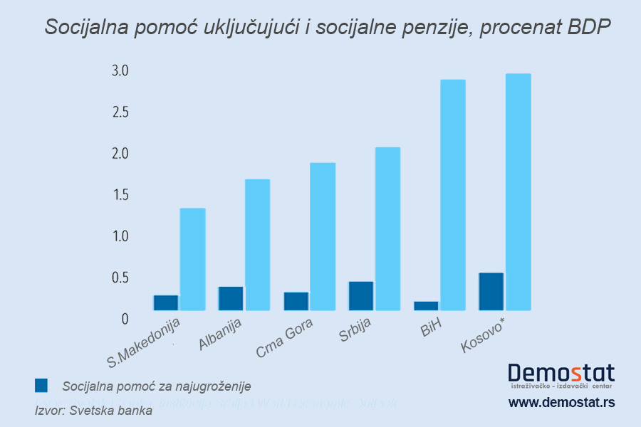 Pored navedenih problema, programi socijalne pomoći ne ublažavaju siromaštvo na adekvatan način i ne daju dovoljnu podršku ugroženim domaćinstvima. Izdvajanja za socijalnu pomoć u regionu su relativno visoka ali nisu usmerena tako da pomažu najsiromašnijima. Programi koji su specijalno osmišljeni da pomognu najsiromašnijima predstavljaju samo malo deo ukupnih socijalnih izdvajanja – od 4 procenta u BiH do 17 procenata ukupnih socijalnih izdataka Srbije. Srbija je na sredini lestvice zemalja u regionu prema postotku socijalnih izdvajanja u odnosu u ukupni bruto domaći proizvod (BDP) sa 2 odsto udela u BDP što je manje u odnosu na evropski prosek koji iznosi oko 2,5 odsto.