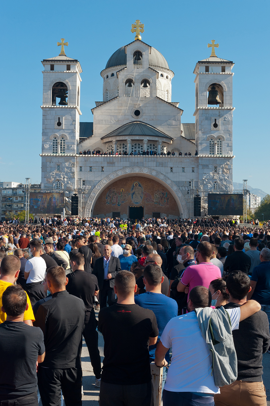 Narednog dana istu privrženost „đedu", kako su mitropolita Amfilohija zvali njegovi sledbenici, osetili smo u ogromnoj povorci koja se slila na trg ispred Sabornog hrama u Podgorici. Hilјade lјudi koji su došli na sahranu ne obazirući se na zdravstvene mere, spustilo se na kolena u trenutku kada je prolazila pogrebna povorka. „Izgubili smo arhiepiskopa, pomiritelјa naroda", jada se devedesetpetogodišnji Svetozar Pavićević koji je na skup došao peške iz svog sela.
