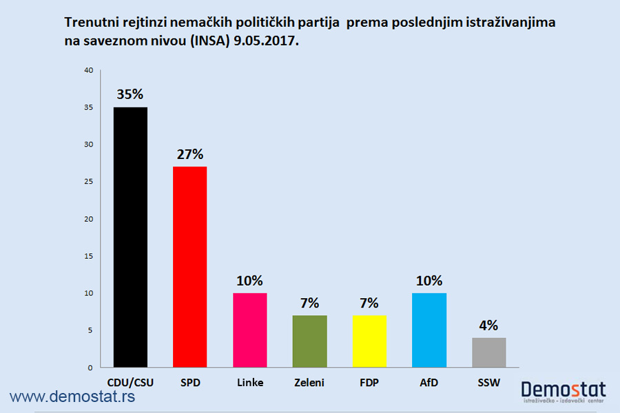Analitičari smatraju da bi Šulc mogao da doživi politički sunovrat ako SPD u nedelju izgubi Severnu Rajnu-Vestfaliju, “tvrđavu” kojom neprekidno vlada 39 godina, a Angela Merkel bi imala sigurne izglede za još jedan kancelarski mandat.
