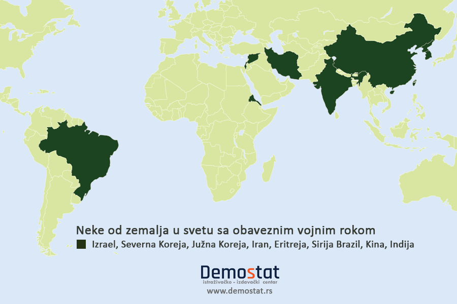 *Od 40 evropskih zemalja koje imaju oružane snage, njih 15 ima neki oblik služenja vojnog roka, dok među nekadašnjim republikama bivše Jugoslavije nijedna država nema obavezno služenje vojske