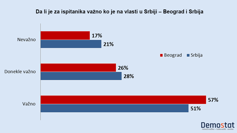 Pri kraju razgovora sa preko 1200 građana Srbije, pitali smo: „Kakav je vaš odnos prema tome ko je na vlasti u Srbiji? Da li je to pitanje za vas nevažno ili važno ili donekle važno a donekle nevažno?“.