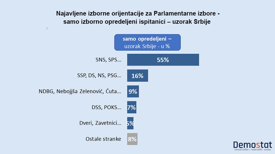 - drugu grupu čine pristalice opozicijskih stranaka koje najverovatnije prolaze cenzus – oni čine 37 posto izašlih na izbore koji znaju za koga će glasati;
