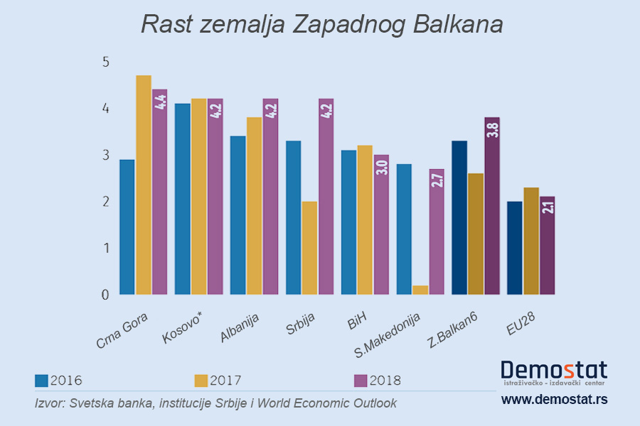 U 2018. godini zabeleženo je ubrzanje rasta u regionu dostižući 3,8 odsto. Srbija, kao najveća ekonomija u okruženju, beleži rast od 4,2 odsto što je značajno više od ranije predviđenih 3,5 procenata. Ovakav porast stvoren je potrošnjom i investicijama, ali delimično je nastao i zahvaljujući povećanju penzija i plata u javnom sektoru i oporavku energetskog sektora nakon pada produktivnosti iz 2017.