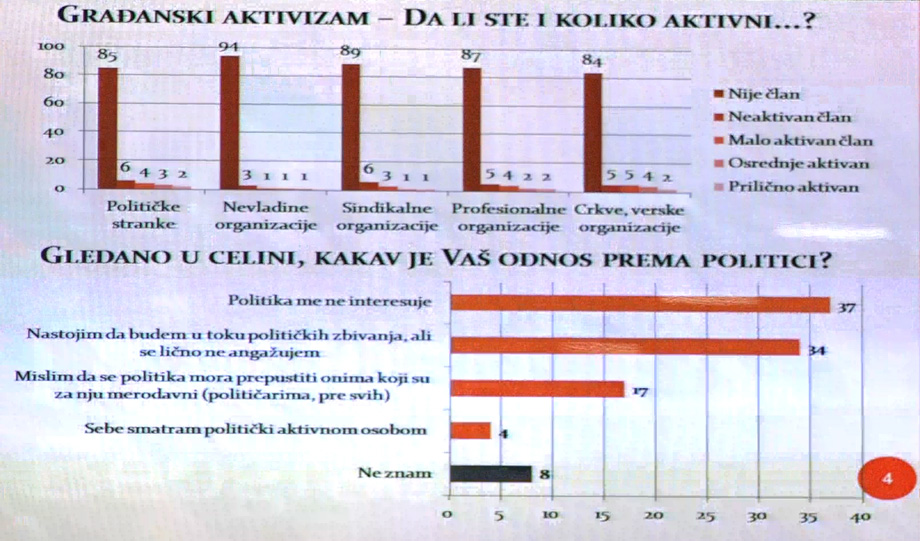 Na okruglom stolu „Politički aktivizam u Srbiji“ predstavljenu su rezultati istraživanja koje je CESID sproveo u periodu od 16. do 26. maja na slučajnom, reprezentativnom uzorku od 1000 građana Srbije.