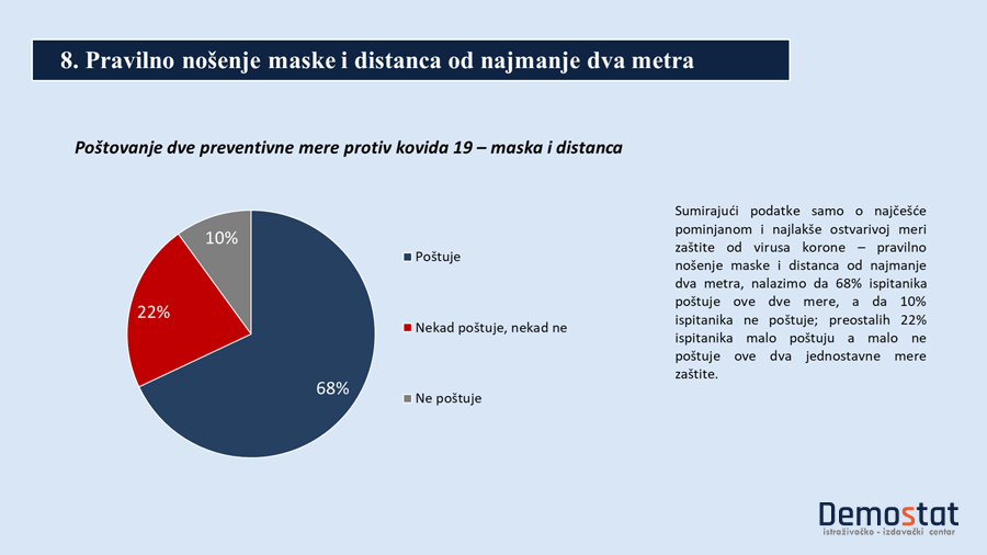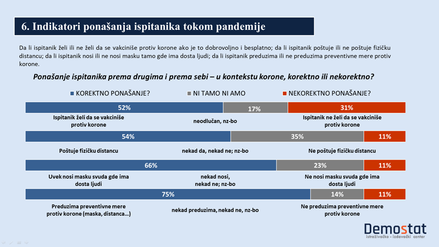 Sredinom septembra ove godine, istraživački tim IIC Demostat realizovao je, putem neposrednog ličnog intervjua, istraživanje odnosa građana Srbije prema pandemiji korona virusa, na uzorku od 1200 ispitanika.