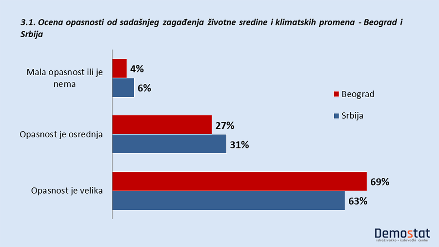 Građani Srbije imaju predstavu o velikoj opasnosti od zagađenja životne sredine i prirode uopšte, kao i opasnosti koje nose klimatske promene.