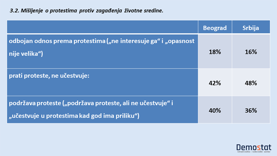 Treba obratiti punu pažnju na politički potencijal podrške ekološkim protestima, jer činjenica da proteste podržava dve petine Beograđana i nešto više od trećine građana Srbije, ni malo nije zanemarljiva. – Verovatno serija građanskih protesta koji se dešavaju ovih dana, menjaju i opšti odnos građana prema protestima.