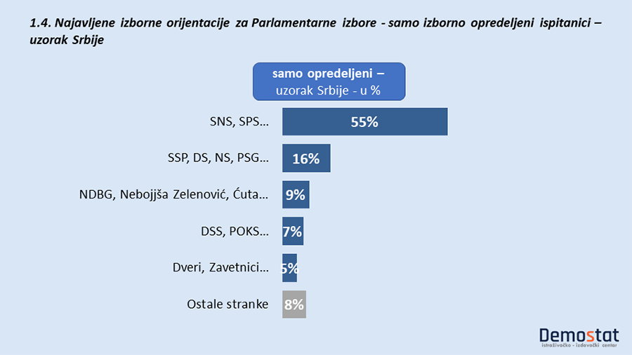 Uzorak Srbije – Parlamentarni izbori: u strukturi izborno opredeljenih ispitanika (bez apstinenata i sl), razlikujemo tri grupe građana:
